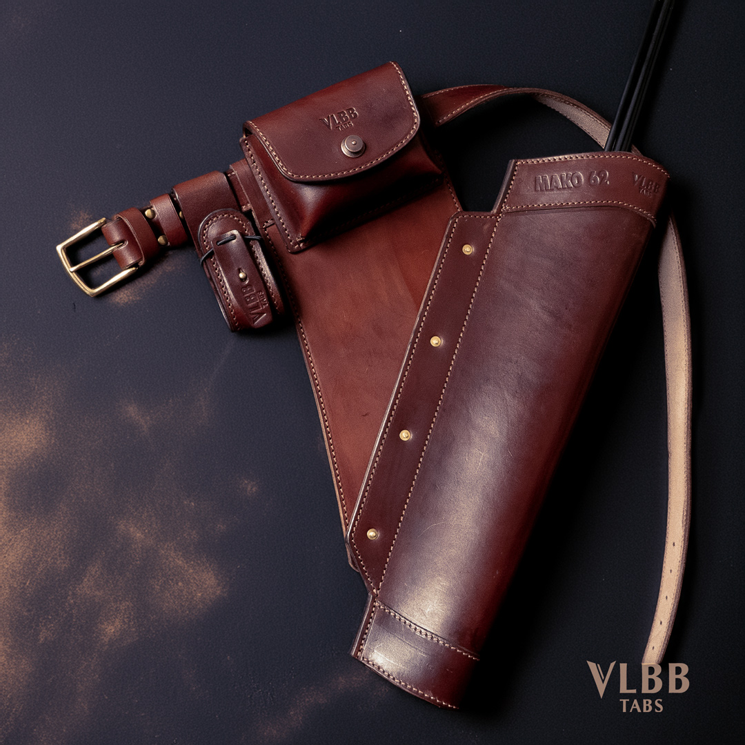 This is the belt‑hanging part of a target quiver, supplied with the arrow basket. It’s designed to sit on your belt for fast, unobtrusive access on the line. Compatible with VLBB belt accessories, so you can combine it on the same belt with items like a belt pouch, bow holder hook, or binocular hook. Made from 3 mm full‑grain cowhide for durability and shape retention.